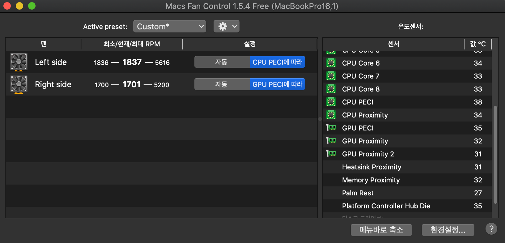 그리고 좌측이 CPU이고 우측이 GPU인 이유는 맥북프로 16인치의 경우 좌측에 CPU 우측에 GPU가 있기 때문입니다.