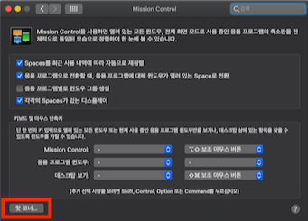환경설정-> 미션 컨트롤(MissionControl)->핫코너